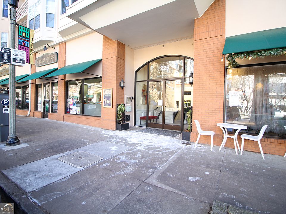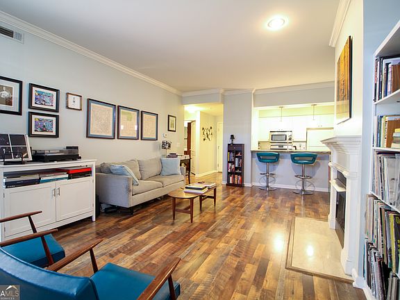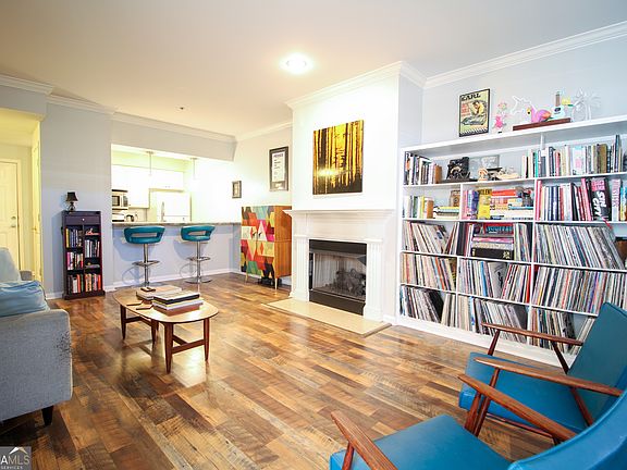 Excellent value in the heart of downtown Decatur. Open floor plan features light-filled living room with gas fireplace, plus generously sized bedroom with a walk-in closet. East-facing private covered balcony. Remodeled bathroom, new kitchen countertops, sink and faucet; rustic hardwood floors, and new water heater. Amenities include saltwater pool, fitness room, clubroom, and gated covered assigned parking space #43. Financially sound HOA. Walk across the street to Decatur Square's restaurants, shops, and festivals; plus a short walk to the schools, parks, pharmacies, and transportation (MARTA & Emory CLIFF Shuttle.