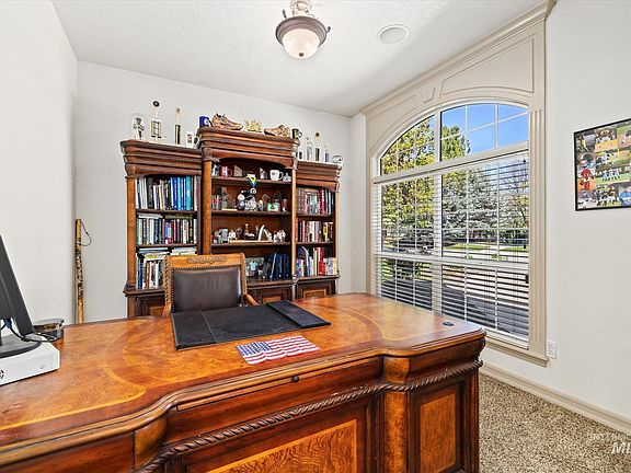 Discover luxury and convenience in this exquisite 4-br,2.5-bath home, boasting over 3,300 sq ft of beautifully-appointed living space. Located within the serene Island Woods community, just minutes from local fine dining,shopping,entertainment and medical facilities. Features include a great room that is anchored by a cozy fireplace,a space for both festive occasions and tranquil evenings in. A master suite promises rest and rejuvenation, featuring a deep soaking tub,walk-in shower,dual vanities and a huge walk-in closet. The office on the main level is perfect for those working remotely. Step outside and immerse yourself in the community's exclusive amenities, including a sparkling pool, pickleball court, walking trails, tranquil ponds, and the convenience of a short stroll to the Boise River Greenbelt.The backyard opens up to common area green space. A spacious 3+ car garage offers extensive room for vehicles and a shop area for hobbyist or DIY enthusiast. This home is not just a must-see, it's a must have!