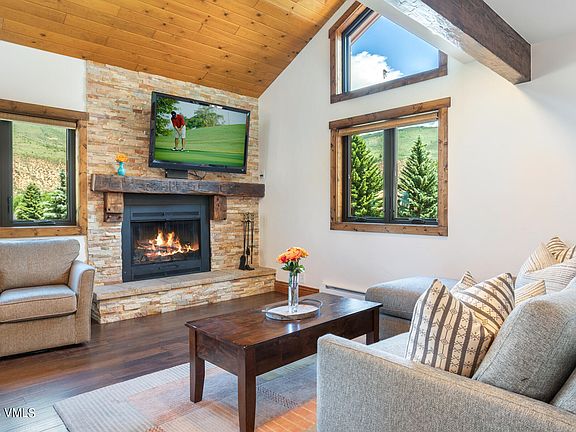 Nestled in the heart of the Rocky Mountains, this charming townhouse offers the perfect blend of comfort, convenience, and natural beauty. As you step into this spacious home you'll immediately notice the warm and inviting ambiance. With 3 bedrooms, 2.5 baths, wood floors, all new Renewal By Anderson windows and slider along with other upgrades, the well-designed layout ensures privacy and comfort for everyone. Relax by the wood burning fireplace in the winter or take in the lush summer views from the balcony off of the dining room. This townhouse boasts a two-car garage, providing ample space for parking and storage, and is one of the only in this complex with interior stairs accessing the garage. Conveniently store all your outdoor gear so you're always ready to hit the slopes or explore the nearby trails. One of the highlights of this property is its proximity to a range of amenities that EagleVail offers. Just a short stroll away, you'll find an 18 hole golf course, where you can tee off amidst beautiful mountain views or make it quick golf round on the par 3 course. Take a refreshing dip in the pool or challenge friends to a game of pickle ball or tennis on the courts. If you have a green thumb, indulge your passion in the community garden, where you can grow your own fresh produce. Enjoy the tranquility of mountain living while being just a short drive away from the world class year round ski resorts of Vail and Beaver Creek.