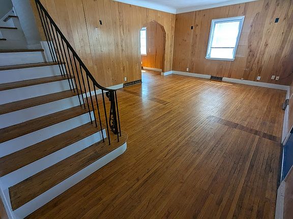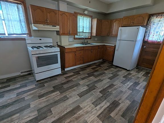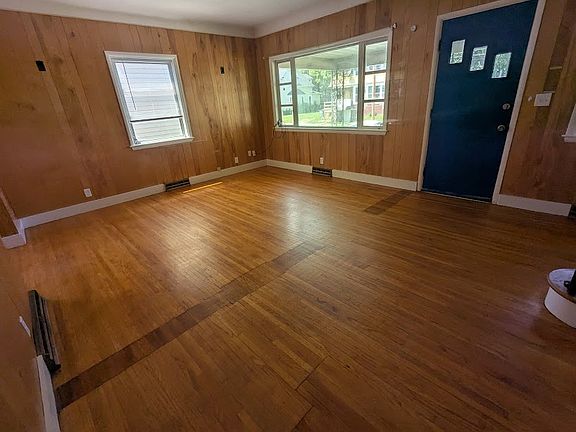 Large 2 bedroom home with a full basement for storage, and fenced in back yard, Move in ready. 1/2 bath on main floor, hardwood floors, Security doors front & back. Lead clearance being completed this week, No Pets Stove & Refrigerator, window air provided Applications on Zillow, tenants pay all utilities, fenced yard,