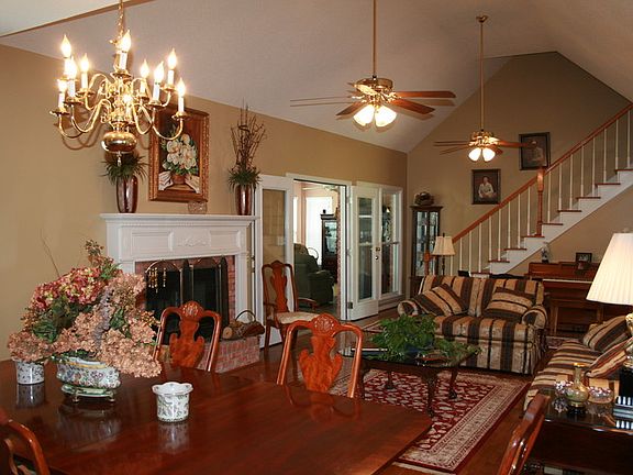 On Logan Martin Lake, in beautiful Eastland Shores, extensive dock with floating pier, year round water, boat landing, deck and patio with fountains, award winning landscape, irrigated garden site, sprinkler system with water from the lake, 2 car attached garage, 2 car separate garage with storage loft, new roof, termite bond, three separate heat pump units for three separate areas of the home,Upstairs: two large bedrooms, sitting room, and bath with several storage closets and built in drawers.Downstairs: three bedrooms (one can serve as an office) and two baths with Jacuzzi, living room-dining room with fireplace, large sun room with windows all around (wired for surround sound), kitchen and breakfast nook with ceramic tile floor, granite counter tops, dishwasher, laundry room, drapes and wooden blinds, and much, much more.