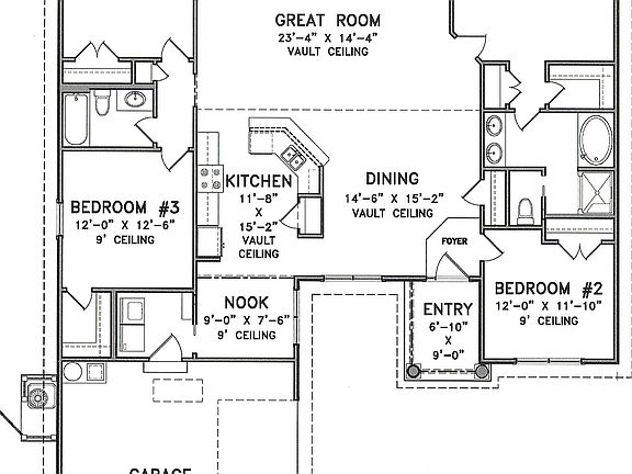 Open and Spacious lakefront 4 Bedroom/2 Bath home with vaulted ceilings and flowing floor plan. The Foyer off the entry way opens to a large great room. The Kitchen island has a breakfast bar and plenty of cabinets. The Dining Room and Great Room have vaulted ceilings. The home has 9 ft ceilings giving it an even more spacious feel. With 4 Bedrooms, there is plenty of space for a family or guests and a home office. The Master Suite has 2 Closets, a large shower and garden tub. The back porch is covered and perfect for grilling or entertaining while enjoying the view of the lake. The stone columns give the home major curb appeal and the courtyard entry garage hides the garage from the street view. Great location. Walking path to the elementary school.