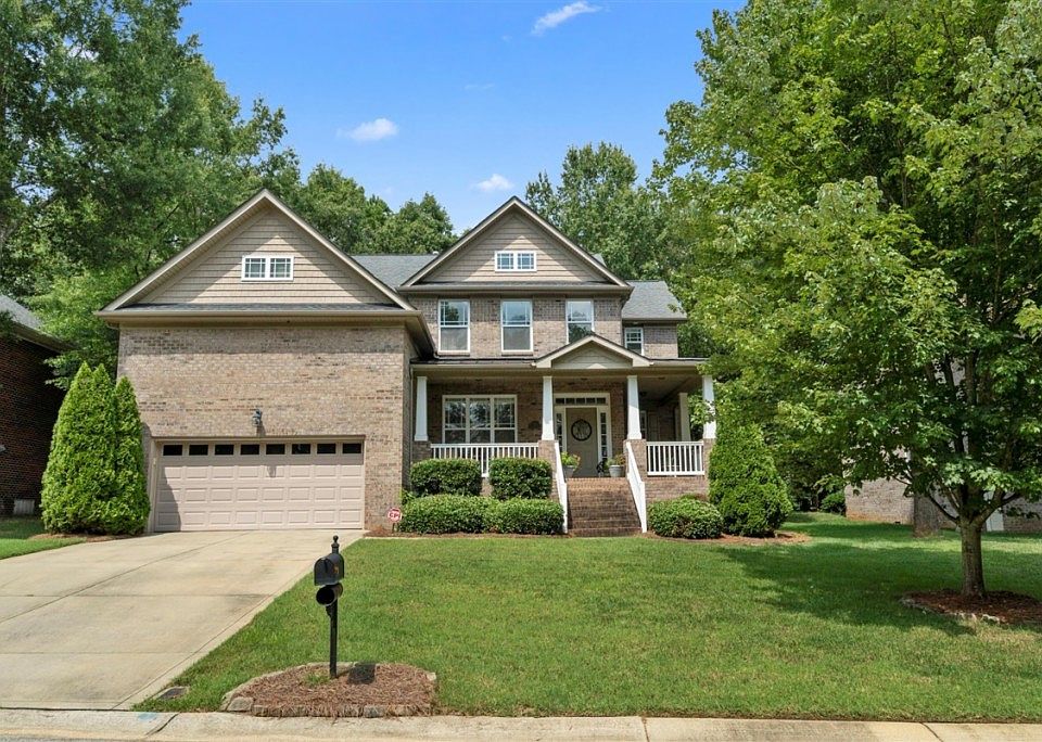 Welcome to this gorgeous brick home in Satterfield in Indian Trail, NC! Featuring hardwood floors, decorative trim molding, a formal dining room, open flow to the living room, gas log fireplace with stone detail from floor to ceiling, and more! The kitchen features a center island, tons of cabinet and counter space, and an eating area. There is a bedroom and full bathroom on the main level. Upstairs the primary bedroom features a sitting room and ensuite bathroom with separate tub and shower, and a dual sink vantiy . Two additional bedrooms and a spacious bonus room share access to a full hall bathroom. Enjoy time outside in the fully fenced and private backyard with paver patio lounge area!