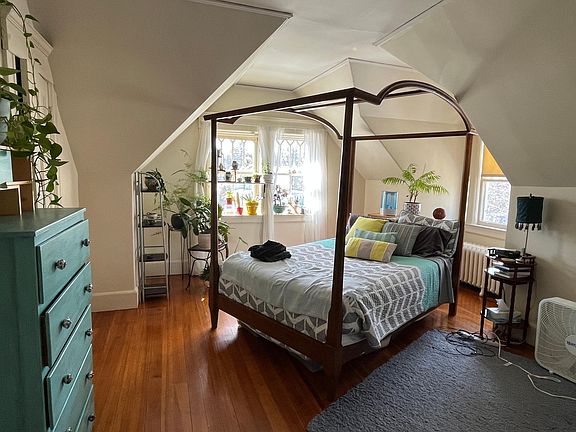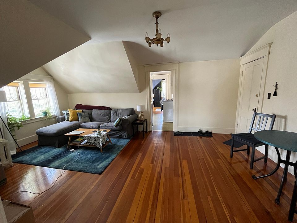 $1300 includes heat and hot water. Convenient to Smith College, downtown Northampton and located near bus route. Charming eaves in this 3rd floor, bright and spacious 1 bedroom apartment with wood floors. Large Kitchen, Living Room, Bedroom and small area for study in charming Victorian style home. Coin-op laundry available across the street. Cat considered with responsible tenant. Off street parking for 1 car. This is a nonsmoking building. Available April 1st. First months rent, 1 month security deposit to Landlord and 60% of 1 month Rental Fee required to Real Estate Office. Owner pays for trash. Coin Op laundry across the street. Tenancy at Will.