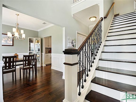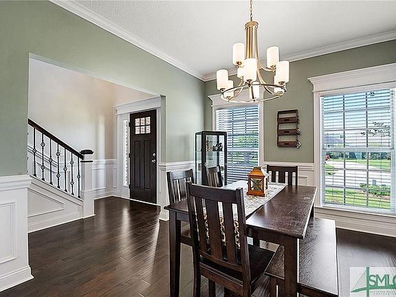 This execute, full brick, 5 bedroom, 3 bathroom home has stunning wood floors downstairs and extensive trim throughout the home! Stunning entrance has tons of natural light, a gorgeous staircase with spindles and wood treads and a formal dining room nearby. Kitchen upgrades include SS appliances, tiled back splash, white shaker style cabinetry, granite, large pantry and island overlooking the living room & breakfast room. Downstairs has one guest bedroom with full bathroom. The master suite plus 3 more bedrooms are upstairs along with the laundry room. Master bathroom has double vanities, separate shower and bathtub and a large walk in closet. Enjoy the large, covered back porch with a beautiful view of the golf course and lagoon! Wonderful neighborhood pool is only a short walk. Newly renovated golf course with clubhouse and driving range is coming Fall 2019.