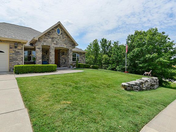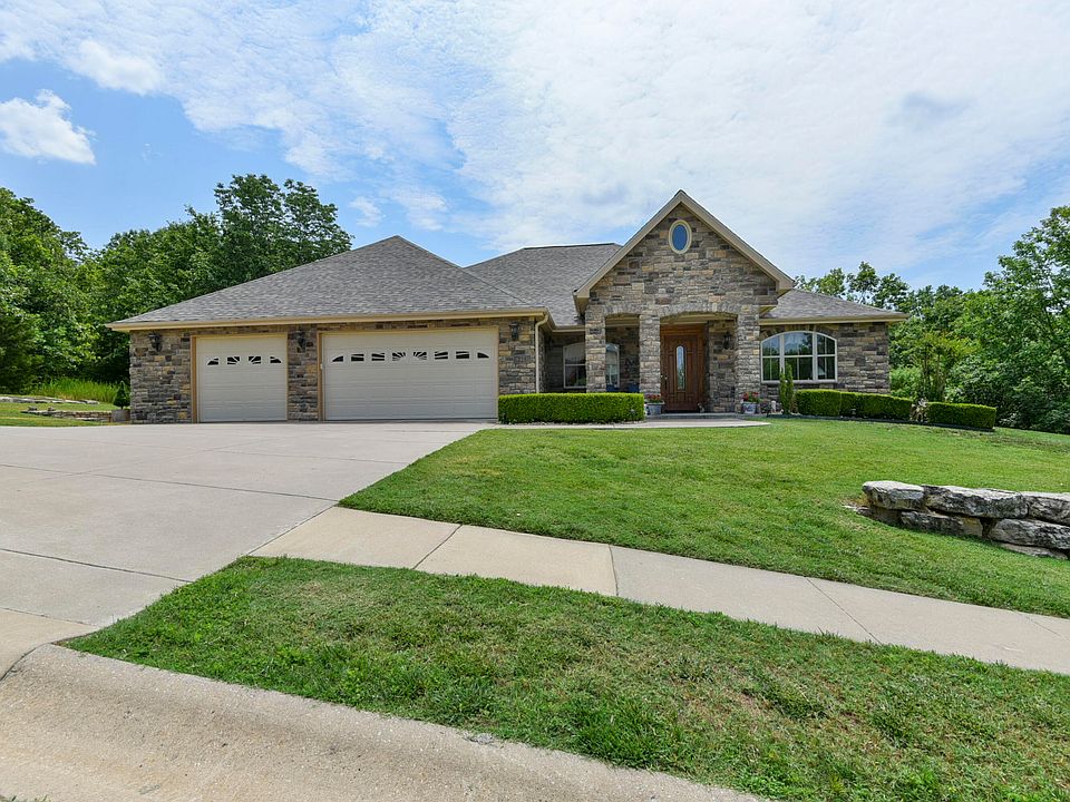 ** OPEN HOUSE 7/1/23 10a-12p ** Exceptional quality abounds in this custom-built well cared for home located in prestigious Oak Knoll at Branson Creek. This one owner home all on one level features a split open floor plan, 10-foot ceilings, living room fireplace flanked by built-ins, huge office, and fully-finished enclosed sun room. The kitchen provides granite countertops, double sink with 3rd basin, appliances less than a year old, ample cabinet space with bottom cabinet rollouts, and corner pantry. Just off the kitchen is an additional larger pantry for more storage. New composite wood flooring, beautiful trim and finishes including 2,000 linear feet of premium crown molding. All of the doors, cabinetry, and trim is solid oak. The superb construction includes concrete grade beams in the poured concrete foundation. The private master suite has walk-in closet and master bath equipped with double vanity, walk-in shower, and walk-in tub. Oversized 3-car garage, air conditioned, storage cabinets, and more storage in the attic with pull-down stairs access. Water softener and water filtration system located inside the garage. There is also a 1-car detached garage/workshop that has A/C and matches the house. Outside the garage is a $40,000 Diesel Generator, so no need to worry about being without power. Stone front exterior and durable fiber cement siding that has been freshly painted. Brand new roof June 2023. Wonderful curb appeal and beautifully landscaped with large stone retaining walls and well-manicured front and back yards. Fully fenced (wrought iron) in back yard. This immaculate home is located within a few short minutes of championship golf courses, and close to everything Branson has to offer, shopping, dining, shows. Schedule your showing and come see this fabulous home today!