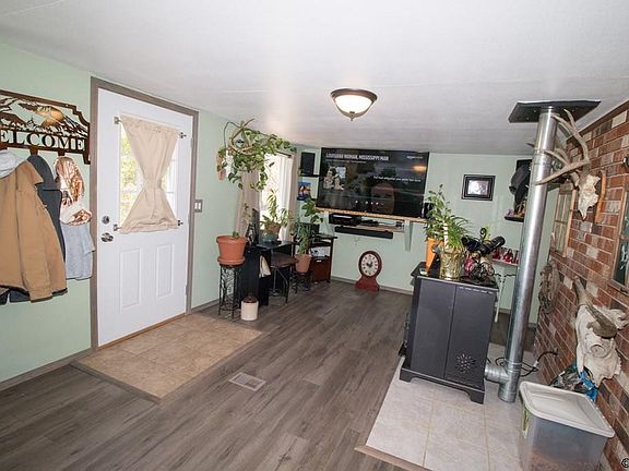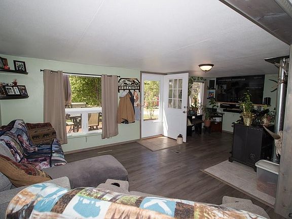 This amazing property features an efficient home on over acre with 2 car detached garage, retreat shed with upper loft and concrete and carport. This home has new roof, new plumbing, new hot water heater , updated electric, new windows ,updated bathrooms and has been freshly painted. The fabulous expansive dine in kitchen has new cabinets and all appliances including washer and dryer are included. If you need a shop, this 6-year-old garage includes pellet stove, wall mount swamp cooler, heat lamps and exhaust fan. Primary bedroom has adjoining bath. Fully fenced ,landscaped yard highlighted with Russian sage, tulips, roses, apple tree, peach tree , cherry tree, pear tree and some xeriscaping. Lots of wildlife including elk, turkey and deer have wandered thru the property. There are 2 lots and 2 water taps included with this purchase. , Construction: Manufactured