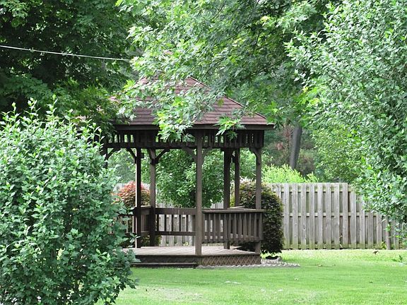 Quality build home with well landscaped yard, concrete circle drive, close to shopping and still private location. 3 bed rooms, 2 full baths, family room, Kitchen dining room, Large living room, office and 3 seasons room. Two car attached garage , two car detached and covered parking for your motor home with dump station. Two Gazebos and shaded yard. Great amenities to enjoy outside and inside.