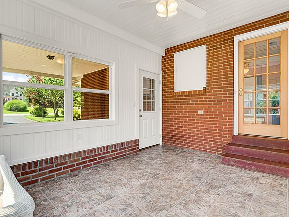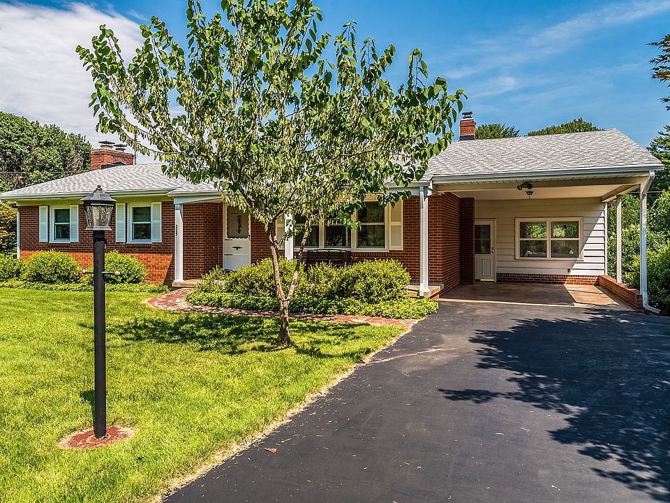 Delightful brick rambler in-town located in established neighborhood. Main level has living room, dining room, eat-in kitchen, 3 bedrooms and 2 baths. Lots of hardwood floors and in very good condition. A glass-enclosed porch is a great treat for morning coffee and relaxing evenings. Lower level offers a large rec room with wood stove insert in fireplace, new wall/wall carpet, unfinished area with washer and dryer, 1/2 bath that can be easily converted to full bath, and walk-out to rear patio and lawn.. Carport on front with access to front porch area. Nice shrubbery and landscaping. Easy to show.....vacant. Call with questions
