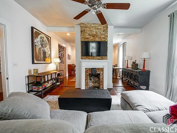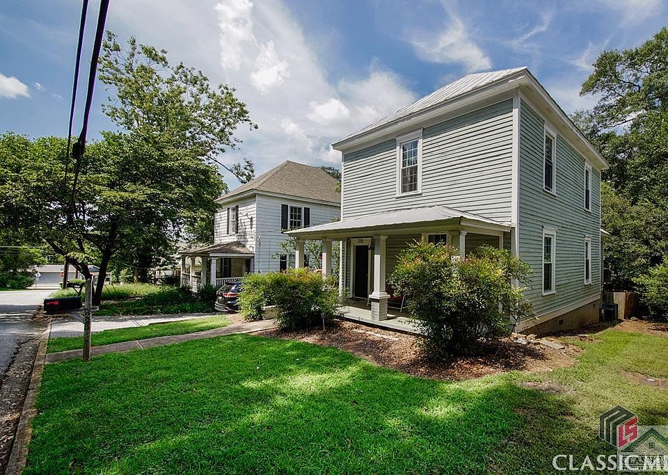 Welcome to 225 Georgia Drive, a charming and historic 2 story home built in 1936. It is conveniently located within easy walking distance of campus and downtown, and just a block or two away from Mama's Boy, Dudley Park, and the Greenway Trail! This home features 9 foot ceilings, 4 decorative fireplaces with mantles, and heart pine flooring throughout! The main floor has been opened to create a flowing and functional floor plan, while maintaining the historical appeal of the home. The double fireplace is composed of gorgeous historic brick with original mantles, and it separates the dining area and living room. The kitchen features stainless appliances, granite counter tops, gas stove, and tile backsplash. It has French doors leading to the back deck, perfect for outdoor dining and entertaining. The full bathroom on the main floor features a beautiful antique claw foot tub. Upstairs there are two large bedrooms, each with fireplaces and old mantles, heart pine floors, custom woodwork, and recessed lighting. There is a large shared full bath upstairs with vintage tile work, tub/shower combo, and beadboard detail. The backyard is fully fenced, with stairs to access the deck and kitchen. Additionally, there is a fire pit and a newly poured concrete pad with electricity for a hot tub or exercise pool. The house has new windows throughout as well as a new HVAC. The entire exterior was repainted and a new vapor barrier installed in the crawl space in July 2019. This home offers old world charm with in-town convenience.