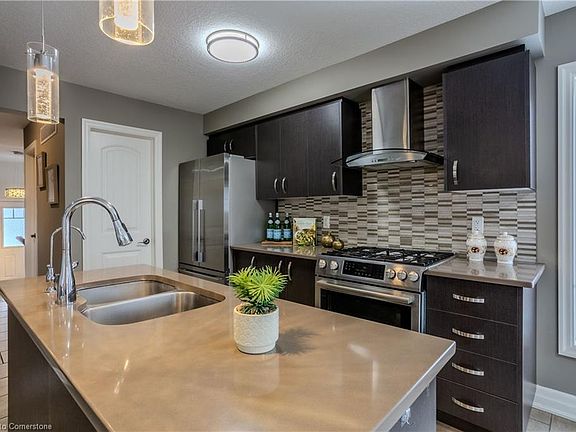 Charming Corner Lot Detached Home - Prime Location! Welcome to this 2014 built stunning 3-bedroom, 4 bathrooms detached home perfectly sitting on a desirable corner lot in South Guelph's prestigious Pine Ridge neighbourhood. This property offers large windows throughout, extra yard space and an excellent curb appeal. The home is filled with natural light, creating a bright and inviting atmosphere. Step onto the covered front porch, the perfect spot to enjoy your morning coffee. Inside you'll find a bright and spacious open-concept layout featuring hardwood floors, high ceilings and modern finishes. The kitchen boasts quartz countertops, stainless steel Bosch appliances and a separate walk-in pantry, making it perfect for both everyday living and entertaining. A unique highlight of this home is the bonus room on the middle level, offering a versatile space that can be used as a home office, playroom, or additional living area. Upstairs, the primary suite provides a relaxing retreat. The beautifully finished basement is a standout feature, offering additional living space complete with a cozy gas fireplace, making it ideal for a family room, home theatre, or a guest suite. Outside, enjoy the beautifully landscaped fenced backyard, perfect for outdoor gatherings. On the front there is a stamped concrete driveway extension with a path leading to the backyard from both sides. Driveway offers ample parking for two cars. Located in a sought-after neighborhood, this home is surrounded by natural beauty and is part of an extremely vibrant and dynamic community. Close to top rated schools, both Public & Catholic. Steps from scenic trails and parks and just minutes from shopping centers, GO station and Hwy 401 for an easy commute. Don't miss this incredible opportunity - Schedule your showing today!