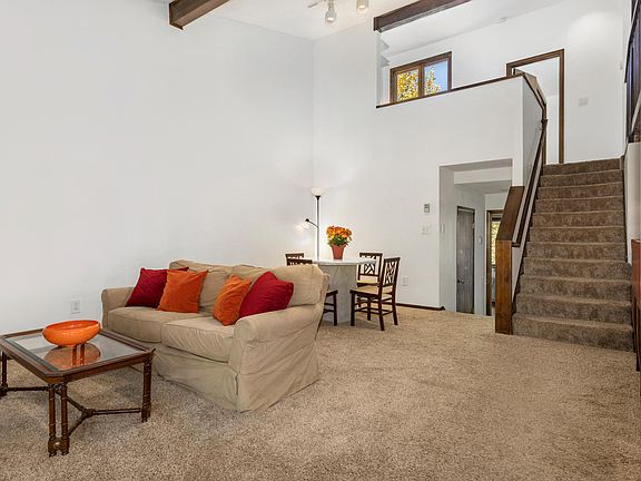 Welcome home...to this tranquil park-like setting. The mountain view from this top floor (2nd floor) deck is spectacularly lit up with the golden aspens nestled amongst the evergreens. Come inside and warm up against the warm wood-burning fireplace! As you enter the home, the vaulted ceilings give a great sense of space. The main living and dining area are to the left and the kitchen is to the right. Take a few steps down at the back of the dining area and find the large utility room with washer and dryer, 1st and 2nd bedrooms offering colorful autumn views. These two bedrooms share a full bathroom recently updated with new shower and floor tiles. Once upstairs, the master bedroom with en suite also shows grand views of the changing leaves from its big picture window. The unique feature that was added to the upstairs is the creation of a loft over the kitchen, creating another sleeping room attached to the bathroom (Jack and Jill) and a bonus room that can serve well for meditation, working-out, office, storage or kids fort. Go down the stairs from here or...down the ladder straight into the kitchen! Find a pantry in the kitchen as well as a large closet at the condo entrance. Exiting the property, the shed at the end of the deck also has vaulted ceilings, perfect for storing all kinds of things like kayaks, bikes, skis, snowboards, golf clubs, etc., whatever your adventuresome heart requires. The trail head is just steps away and the Eagle River is a couple minutes drive away. The luscious Eagle-Vail Golf Course surrounds the development offering a Club House with a restaurant and bar, driving range and putting. Next to this is a community garden, newly renovated community swimming pool, tennis and pickleball courts. Located between the world-class destination ski resorts of Vail and Beaver Creek, this community is served by a free shuttle that avoids those parking fees and gets you up on the slopes without delay! Call for a viewing now!