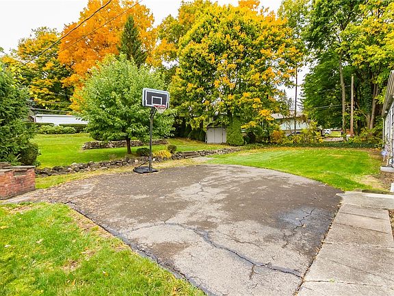 Beautiful ranch with East Irondequoit schools situated on a fully fenced .39 acre lot! 3 bedrooms and 2 full bathrooms! Immediately be impressed by the curb appeal and manicured landscaping! Walk inside to find gleaming hardwood floors! Huge well-lit living room opens to the formal dining area perfect for entertaining! The eat-in kitchen offers Corian counters and ample storage! Enjoy first-floor living where no space is wasted! The main floor features all three bedrooms plus the main bathroom! Step downstairs to find a partially finished basement and second full bathroom where potential awaits! Transform this flex space into a playroom, office, or additional living space! Attached garage and double-wide driveway. You will be blown away by the backyard that includes an asphalt basketball court. This home has been loved and cared for by the same owners for 55 years!