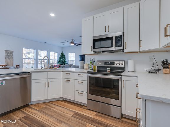 MOTIVATED SELLERS!!! Located just 5 miles from the VA border, this beautifully remodeled home in the popular Eagle Creek Golf community awaits you. New roof & A/C 1/2022. Open concept with large living room, kitchen and separate eat in area & formal dining room. The kitchen was totally remodeled in 2022, quartz countertops, extended peninsula, soft close 42'' cabinets and luxury vinyl plank flooring throughout main floor. Primary bedroom features two walk-in closets, and newly remodeled en-suite. The additional three bedroom are spacious and offer views overlooking the pond and newly constructed 20'x25' deck. The laundry room is conveniently located upstairs for ease of use.