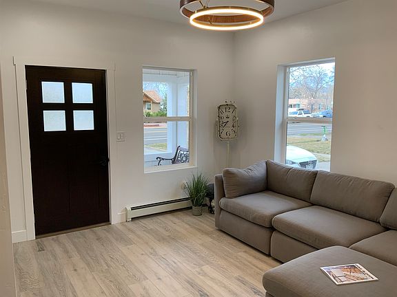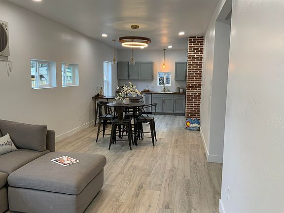 Welcome to your completely renovated urban oasis nestled in the heart of downtown. This charming 2 bedroom, 1 bathroom home boasts a stylish redesign and meticulous attention to detail throughout. As you step inside, you're greeted by a bright and airy living space illuminated by natural light streaming in through the large windows. The open floor plan seamlessly connects the living, dining, and kitchen areas, creating an inviting atmosphere perfect for entertaining guests or simply relaxing after a long day. The kitchen is a chef's dream, featuring brand new stainless steel appliances, sleek countertops and ample cabinet space for all your culinary needs. Whether you're preparing a gourmet meal or enjoying a quick snack, this kitchen is sure to inspire your inner chef. Both bedrooms offer comfortable retreats, generous closet space, and plenty of room to unwind. The pristine bathroom boasts modern fixtures, a luxurious shower, and elegant tile work, providing a spa-like experience right at home. Outside the property is complete with a detached 2 car garage, offering convenient parking and additional storage space for your belongings. The low maintenance yard provides the perfect backdrop for outdoor gatherings and the covered front porch is a perfect place to relax and enjoy your morning coffee. Located in a highly desirable downtown area, this home offers unparalleled access to shopping, dining, entertainment, and more. With its prime location and impeccable design, this is urban living at its finest. Don't miss your chance to make this stunning property your own!