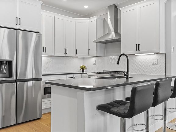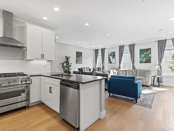 Spacious 3 bed, 2 bath with heated garage parking located just 3 blocks from Maverick Square! Live comfortably in this 2nd floor corner unit featuring 9’0” ceilings with crown moulding, 7 large south facing windows plus an open concept floor plan with kitchen peninsula & ample space for a full-size dining table. A modern kitchen includes a 5-piece stainless steel appliance package with gas range, herringbone tile backsplash, and polished quartz countertop. The main bedroom features a 7’x8’ walk-in closet and an en-suite bath with dramatic Carrara porcelain & glass shower. Additional highlights: 27” washer & vented dryer, matte black fixtures throughout, Central HVAC, Navien tankless hot water, LED lighting, Ring doorbell, keyless entry, intercom system, Cat6 & surround sound. Walk to Maverick Station on the Blue Line, East Boston’s bustling waterfront, dining, parks, fitness & much more from this prime location!