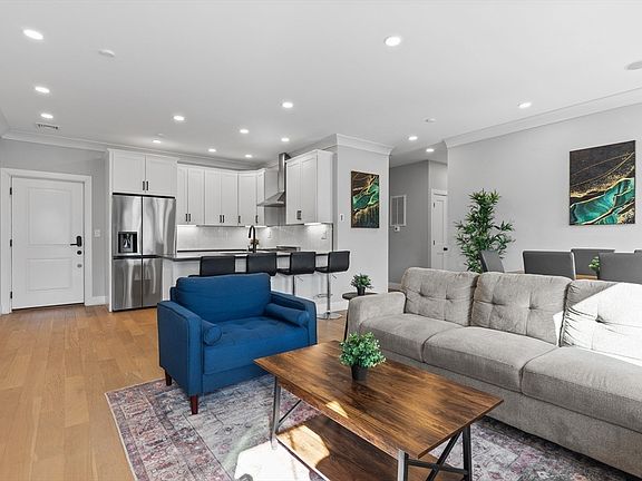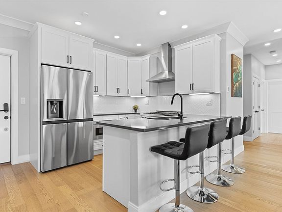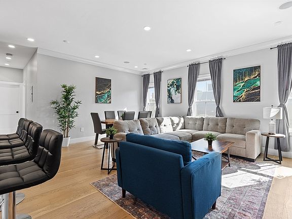 Spacious 3 bed, 2 bath with heated garage parking located just 3 blocks from Maverick Square! Live comfortably in this 3rd floor corner unit featuring 9’0” ceilings with crown moulding, 7 large south facing windows plus an open concept floor plan with kitchen peninsula & ample space for a full-size dining table. A modern kitchen includes a 5-piece stainless steel appliance package with gas range, herringbone tile backsplash, and polished quartz countertop. The main bedroom features a 7’x8’ walk-in closet and an en-suite bath with dramatic Carrara porcelain & glass shower. Both guest bedrooms can accommodate king-size beds! Additional highlights: 27” washer & vented dryer, matte black fixtures throughout, Central HVAC, Navien tankless hot water, soaking tub, LED lighting, Ring doorbell, keyless entry, intercom system, Cat6 & surround sound. Walk to Maverick Station on the Blue Line, East Boston’s bustling waterfront, dining, parks, fitness & much more from this prime location!