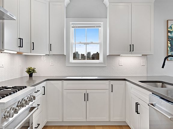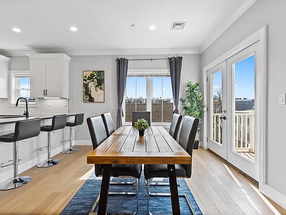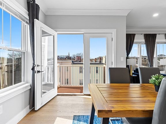 Spectacular 2 bed +den penthouse with heated garage parking located just 3 blocks from Maverick Square! Experience the wow factor as you enter into an expansive open concept floor plan boasting skyline views, a French door deck, 8 windows with southwest exposure, 9-foot ceilings with crown moulding, large kitchen with 12-foot polished quartz peninsula & ample space for a full-size dining table. The main bedroom offers 2 closets plus an en-suite bath with dramatic Carrara porcelain glass shower & double sink vanity. A large guest bedroom sits across the hall from a 12’x9’ den/study. Additional highlights: 27” washer & vented dryer, matte black fixtures throughout, 5-piece stainless steel appliance package with gas range, Central HVAC, Navien tankless hot water, LED lighting, Ring doorbell, keyless entry, intercom system, Cat6, and surround sound. Walk to Maverick Station on the Blue Line, East Boston’s bustling waterfront, dining, parks, fitness, and much more from this prime location!