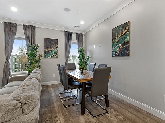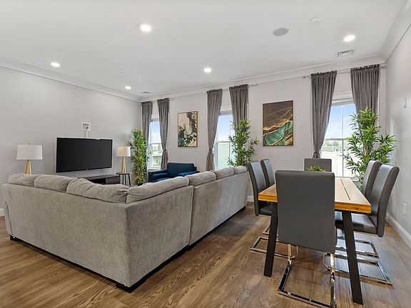 Spacious 3 bed, 2 bath with heated garage parking located just 3 blocks from Maverick Square! Live comfortably in this 3rd floor corner unit featuring 9’0” ceilings with crown moulding, 7 large south facing windows plus an open concept floor plan with kitchen peninsula & ample space for a full-size dining table. A modern kitchen includes a 5-piece stainless steel appliance package with gas range, herringbone tile backsplash, and polished quartz countertop. The main bedroom features a 7’x8’ walk-in closet and an en-suite bath with dramatic Carrara porcelain & glass shower. Both guest bedrooms can accommodate king-size beds! Additional highlights: 27” washer & vented dryer, matte black fixtures throughout, Central HVAC, Navien tankless hot water, soaking tub, LED lighting, Ring doorbell, keyless entry, intercom system, Cat6 & surround sound. Walk to Maverick Station on the Blue Line, East Boston’s bustling waterfront, dining, parks, fitness & much more from this prime location!