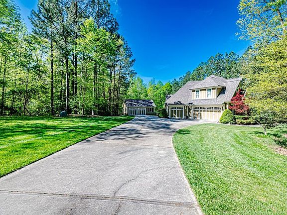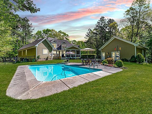 This meticulously maintained, custom built home in sought after Henrys Ridge truly HAS IT ALL! Nestled on 1.83ac you have the best of both worlds; privacy amidst a wooded lot & neighbors creating a sense of community. Main floor boasts a spacious primary suite with tray ceiling & study connected by a pocket door, chefs kitchen including 6-burner Thermador cooktop, vaulted ceilings in living & keeping rooms. Upstairs you will find 2 add'l bedrooms connected by a full bath, bonus room with wet bar & tons of storage. Spend summer days outside relaxing by the in-ground pool & during winter nights get cozy inside with your choice of 2 stone fireplaces. Sip your favorite beverage & listen to the sounds of nature on the screen porch. Fenced in backyard. Bring your boats, cars & hobbies b/c there is plenty of space in the 3-car attached garage & 2-car det garage offering workshop area & full bath convenient for pool access. Just minutes to Jordan Lake Rec Area & Boat Ramps. Easy access to Highways 64, 751 & I-540. This home is loaded with upgrades; come take a look for yourself & have your agent send you the features!