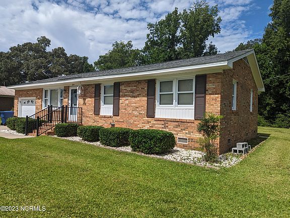RARE-RARE-RARE OPPORTUNITY! Offered by its original owner, this meticulously maintained move-in ready brick exterior home situated on 1.33-acre lot in the heart of Havelock awaits you. The bright open kitchen-dining combo boasts upgraded KraftMade cabinetry with all appliances, including clothes washer & dryer. Wood flooring graces all three bedrooms & sits beneath the living room & hall carpeting. Bathrooms include vintage floor tiles with the hall bathroom sporting a large step-in shower. The attached single garage provides ample overhead storage & additional cabinetry.