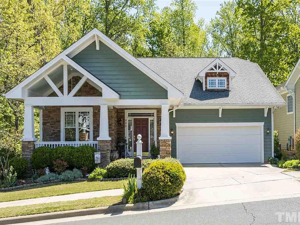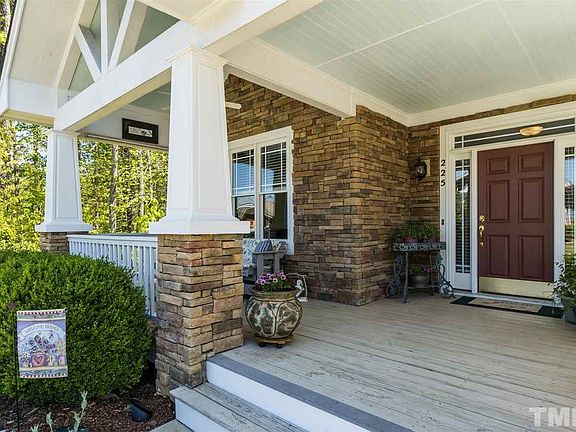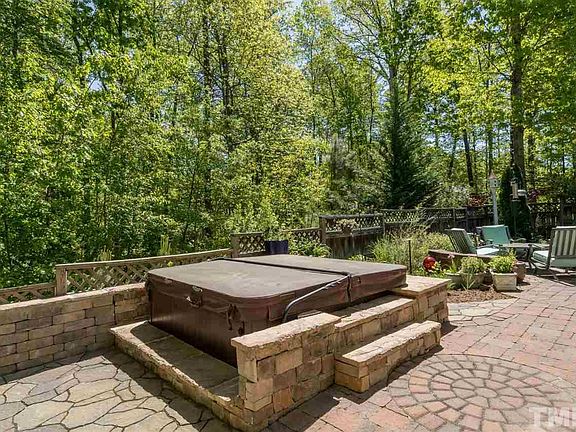 Stunning Custom Craftsman! This home is sure to impress with newer HVAC units and tankless water heater, large sun room, & outdoor oasis. Inside enjoy welcoming foyer, Merbau hardwood floors, vaulted family room with stone gas fireplace, granite island kitchen, dining room with tray ceiling, and first floor Owners Suite. Custom masonry patio leaves no stone unturned with permitted, built-in spa, large seating area, private wooded views, & garden! Walking distance to greenway & minutes to Downtown Apex!