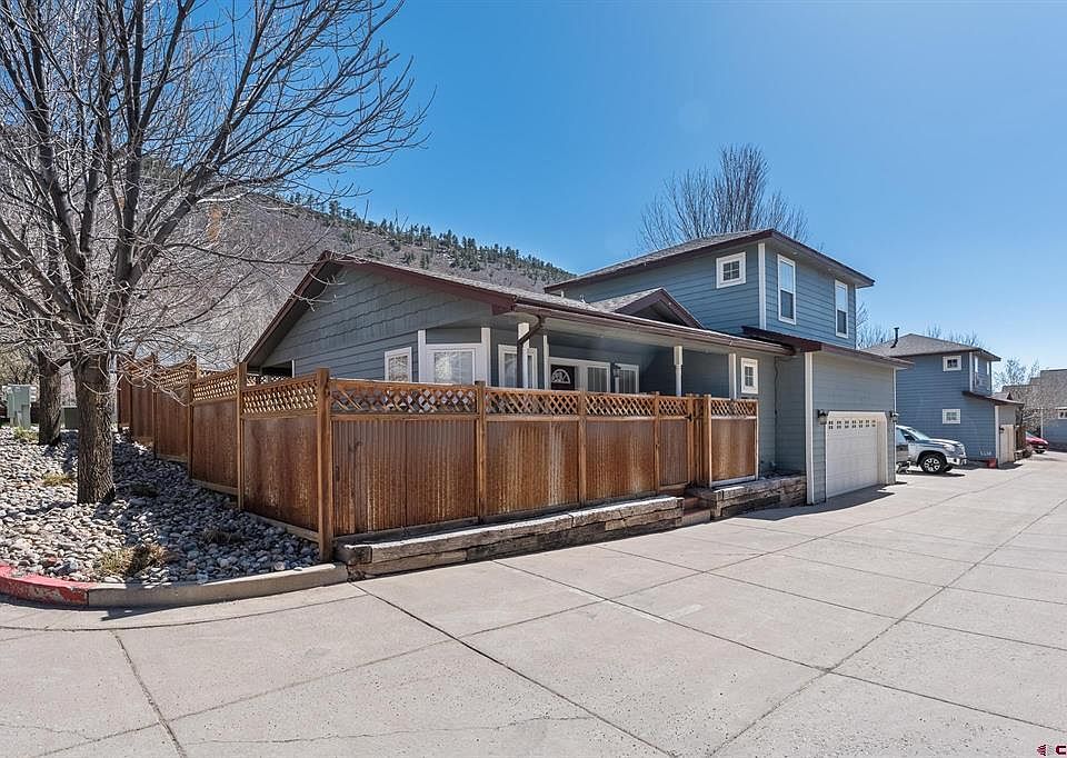 Highly coveted Sky Ridge townhome now available for ideal Durango living. Upon entering, you're greeted with an open floor plan filled with natural light. The open kitchen has a bar facing the living room and direct access to the dining space. Open the French doors leading to the fully fenced back yard to also enjoy the covered patio area. The sprinkler system helps keep the grass green with little hassle. The comfortable primary suite is conveniently located on the main level complete with floor to ceiling windows, private bath, walk in closet, and additional storage space. Upstairs, there are two other spacious bedrooms with a shared full bathroom.The main level also features a spacious laundry/mudroom that has a half bathroom, and access to the large two car garage. Fitted with an electric vehicle plug, this space is perfect for cars, toys, workspace, and storage. While this is deeded a townhome, there is no attached unit, it lives very much like a single family home. Don't miss out on this great Durango home located within minutes to downtown, shops, stores, trails, and more.