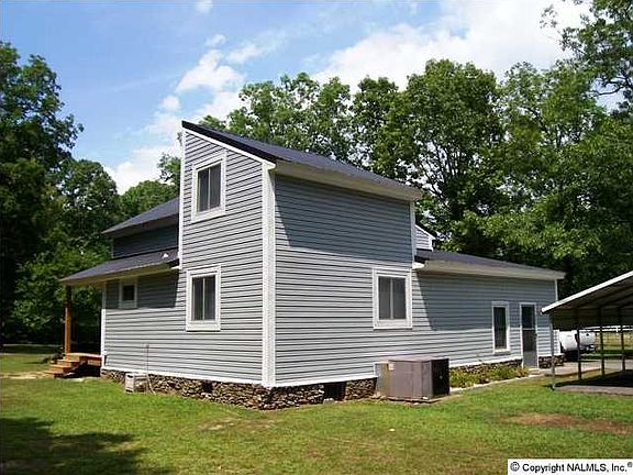 Over 6 acres of level and mostly cleared land in Rainbow City! This modern Farm House features vinyl siding, metal roof, 3 or 4 bedrooms, tons of extra closet space, 2 baths, and a huge vaulted ceiling in the Living room. Living Room has a stacked rock, wood burning fireplace. The eat-in kitchen has solid surface counters, a tile backsplash and french doors leading out to the covered deck perfect for relaxing! There's also a second paved driveway which leads to a large barn.