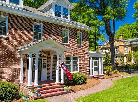 Step back in time with this historical gem featuring gorgeous Georgian Style Architecture. Walk into a grand entryway. Lots of space to entertain from the large dining room to the huge family room with built-in shelves and two sets of double doors to the screened-in porch. On the main level is a bedroom with a large walk-in closet and a full bathroom with a shower. The kitchen has been completely updated with new cabinetry, granite counters, and stainless steel appliances. There are 6 original fireplaces in the home along with all original doors and hardware and beautiful stained glass features. Laundry is conveniently located upstairs. The 3rd story is finished and would make a great apartment or in-law suite. It has a bedroom living area and a bathroom with the original clawfoot tub. Outside grounds have been beautifully maintained and have a large covered back porch with an outdoor kitchen.Home is walking distance to downtown York, which has new restaurants & shops!