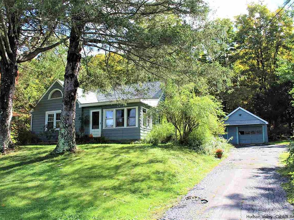 Adorable cape on 1.8 acres in Olivebridge. Needs some tlc. Small guest cottage, good bones, and many custom, handcrafted features are the base for turning this house into the quintessential, upstate cape you crave. Dining room features a fireplace and ornate,oak staircase. Lovely setting with rolling front lawn, established landscaping, and fenced garden. Go to the back of the property to find the cottage with the small seasonal stream behind it. Updates include: custom bath, main house roof 2015, cottage roof 2020, new septic approximately 4 years ago and more.