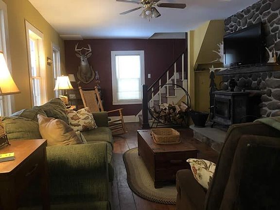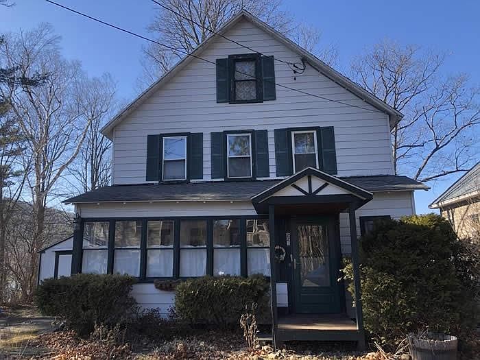 LAKEFRONT living on Goodyear Lake! This recently updated, 4-season home offers 50 feet of PRIVATE WATERFRONT ACCESS!!! Enjoy sunset views of the lake from the large back deck or walk down to the bottom level for water access! On those cooler nights use the HOT TUB!!! The house offers an open living and dining room layout, with plenty of room for large gatherings. The cozy living area features a large stone fireplace with wood stove insert. The full bathroom has been recently renovated with a walk-in tile shower. Upstairs you will also find three bedrooms, plenty of space to accommodate family and friends. The large master bedroom features a sitting area with a picture window, offering gorgeous views of the lake! Sun porches on both the front and back of the house provide more entertaining space. Lakefront property is rare on the lake these days!! Listing agent is related to the seller.