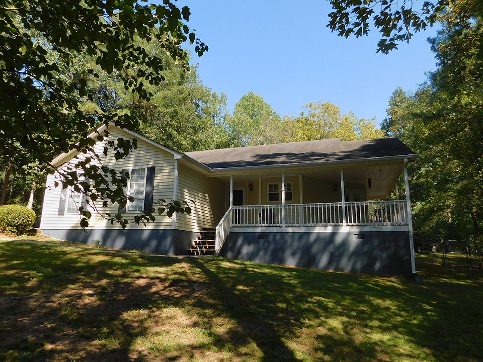 Come see this beautiful home that sits on .70 acre lot. The interior of this 3 bedroom, 2 bath ranch has foyer entrance to trey ceiling family room with fireplace, large dining area with an open floor plan to kitchen. Trey ceiling in master, vanity with separate tub/shower. Large walk in closet. Large wrap around front porch for your rocking chairs. New deck boards and rails on back deck. Finished bonus/flex space with a ductless HVAC system. Large storage building out back for that extra storage. Cozy up to the Fire pit. Fenced in backyard. Newer roof. Move in ready!