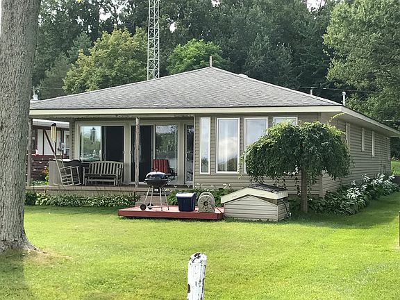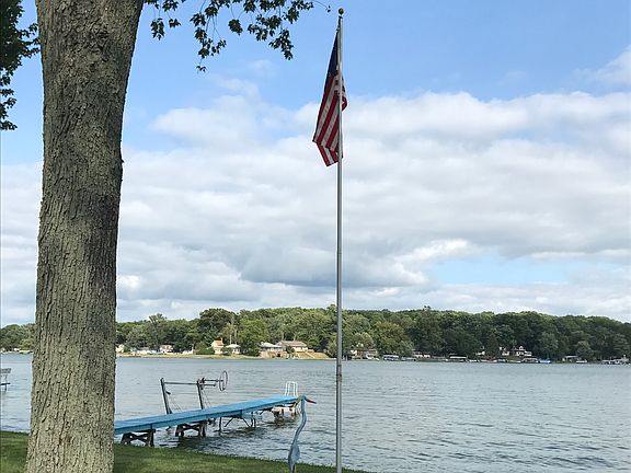 Completely furnished Turn-key. 50' Marble Lake west-side frontage on Coldwater Lake Chain, newly furnished, open concept design with knotty pine ceiling, gourmet Kitchen, 12' Breakfast bar, Dining area, Family room, 3 BR, 2 BA well-insulated year-round home with breath-taking views of Marble Lake. 8 person hot-tub is wired on site. 4 sets of Anderson gliding patio doors make up the front glass wall of the house. Remote control motorized shades give complete privacy when you need it. The 3-season sun room which adjoins BR 2 has Pella windows and screens and a full view of the waterfront. Covered porch provides great seating for watching the moonrise, the fireworks, the ducks or hummingbirds. 2017 new construction: the Master bathroom has double sinks, a corner shower, and is ensuite to Master Bedroom with a walk-in closet but is also conveniently adjacent to the laundry room. Lots of space-saving pocket doors. Master Bedroom and BR 2 have beautifully finished hardwood floors. Master has crown-molding & built-in book cases. KITCHEN: The GE Monogram All-Freezer and Viking All-Refrigerator are counter depth. In 2014 installed Kenmore four-burner gas stovetop with exhaust fan on 12’ island, Kenmore dishwasher, garbage disposal, oversize double sink. In 2010 Kenmore electric glass-top oven, and micro wave. Kinetico Reverse osmosis water filter system in kitchen, ice-maker and 1st bathroom and whole house Kinetico soft water conditioner, all installed in 2014. Custom built-ins include lighted glass-door china cabinet with drawers and pull out storage shelves. Separate pantry for staples. Fully equipped kitchen with dishes, pans,toaster, blender, & tableware. A Bonus room office/playroom with desk and sofa bed adjoins BR 3 which houses the mechanical room, and 6’ mirrored-door closet. 2016 fresh paint and patch throughout the whole house, and new carpet in Bonus room and Bedroom 3. 2014 new $8500 concrete sea wall, 2014 new industrial grade living –dining room carpet. Natural gas forced-air furnace, & central air. Well & septic on both lots with separate parcel numbers, 2nd lot across the street with 1 stall garage has plenty of room for lake toys. Covered overhanging entry way, on cement parking spot is next to entrance door. The main entryway has a stand-alone cedar closet for coats and jackets, just outside the laundry room door. FREE antenna TV from 30’ TV tower with 50” 3D HD TV. Fully furnished with beige leather power reclining sofa, blue leather recliner, 2 large storage cabinets, end-tables and lamps. Pub-height dining room table has butter-fly leaf extension to sit 8 comfortably on 2 benches and 4 chair-stools. 3 queen beds, pull-out air mattress sofa bed, dressers, nightstands, new bedding included. Cottage-style bead-board and shutter elements add to the Lakehouse feeling, but this is no “cottage”. It’s perfect for a growing family OR your own retreat to the pleasures of lake living. Quiet road for walking, biking, or a golf-cart. Perennial hostas adorn the front porch bordered by timbers to make mowing easy. The beauty of this location needs to be seen to be appreciated. Call soon for an appointment to view this Marble Lake property on this sports lake chain. Immediate occupancy is available at closing. This property can be seen Sunday - Friday by appointment only. No Saturday appointments. Sold AS IS. Even at $352,500 this property will be go fast because of a shortage of Coldwater Chain Marble lakefront properties available at this time. Unfurnished at $350,000. Call us @ 517-227-0673 for an appointment.