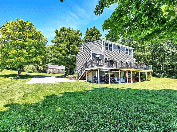 Now is your chance to own 28 acres in a fantastic location complete with spectacular mountain views. The sunrises and sunsets are amazing! A large composite deck overlooks the beautifully landscaped property, with apple and pear trees, fruit bushes, flower and vegetable gardens, and 200 recently planted Christmas trees. There isn't anything to do here. The 3 bedroom Cape has been updated from top to bottom. The kitchen has white cabinetry, new appliances, and farmers sink. There is a dining room, living room with woodstove inserted in fireplace, mudroom, and 1/2 bath. New flooring has been installed on the first and second floors and the interior freshly painted. All three bedrooms and updated bath are upstairs. The basement has a finished family/bonus room. The mini splits, water system, hot water heater are all new too. You also have a 16x20 barn on the property. This home is located close to Lake Winnipesaukee, the Tanger Outlets, and all major roadways. It's a rare find, and you must come check it out!