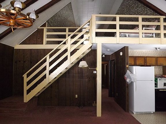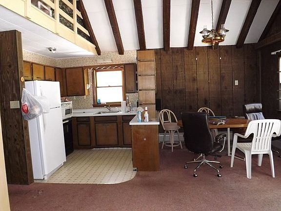 Vacation retreat or year 'round home - This secluded escape is tucked back in the trees. Open living space with a stone fireplace/Harman insert, two bedrooms, two full baths, office with woodstove, laundry room and mudroom on the main level. A bedroom and large loft area on the upper level. All served by a back-up Generac generator. Outdoors finds two decks, a large yard with a split-rail fence, small storage building, and a two-car garage with woodstove. Block foundation crawl space with concrete floor for all mechanicals. Lots of potential on 2.6 acres.