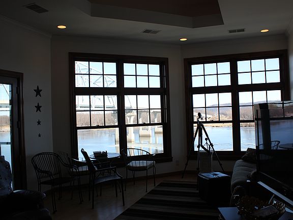 Spectacular panoramic views of the Mississippi River and bluffs. This 2 bedroom, 2 bathroom suite is located on the top floor with coffered ceilings, alcove windows, maple floors, doors and trim. Stainless steal appliances, granite countertops and 2 heated garage stalls. Walking to dining, shops and the National Eagles Center. Shoreline slips are also available.
