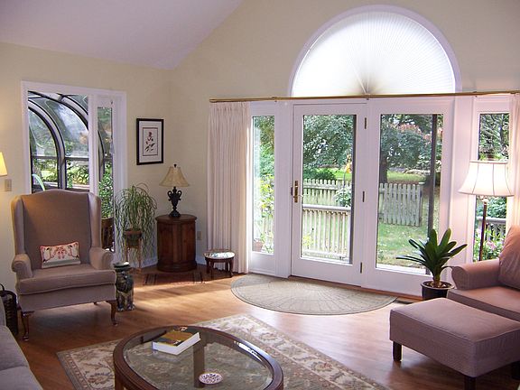 Walk to town from this light and bright expanded cape with first floor mbr! Heated sunroom/greenhouse addition, library with fireplace. Thoughtfully sited with specimen plantings for maximum privacy!