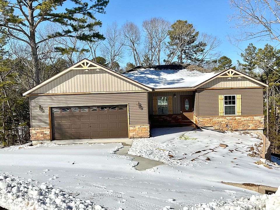 GREAT PRICE UPDATE on this complete NEW CONSTRUCTION! So, add your personal touches to your new home, and move to a subdivision out in the country with easy access to Hollister & Branson. Enjoy a 5bd/3bth with upgrades. This home is at the end of a cul-de-sac on a peaceful lane with pine trees in the back. Decks on both levels. Located in Country Farm Estates, you will have easy access to the lake as well as the amenities of town. Open living, dining, and kitchen area on the main floor as well as the second bedroom and spare bathroom. The Master Bedroom & ensuite bathroom with shower, jetted tub, double vanity, and walk-in closet are on the main floor as well. Downstairs you will find 3 more bedrooms and a third bathroom as well as more living space, and the laundry room. There are rear decks on both levels. As you can see there is some rock on the front and wood accents. Floors are laminate. Also, Measurements are estimated by builder plans. Buyers and their agents to do their own due diligence and are encouraged to view the property. FYI- taxes with a house on 225 Lillian are unknown at this time since 2021 taxes shown are for a vacant lot only. Information should be accurate, but buyers and their agents do own due diligence on measurements, house and subdivision information. Builder will work with buyers on front yard, but has lowered the price to help buyers have room to do something on side and back if they so desire. Thanks for looking and God Bless!-