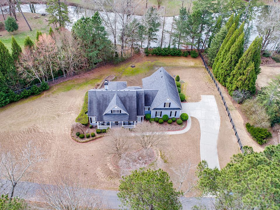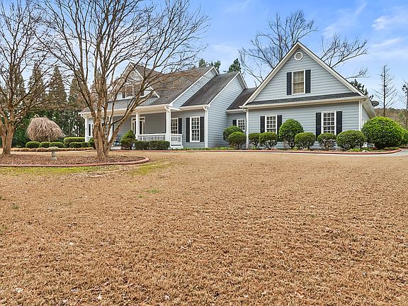 Picturesque property w/rolling pasture, 2 stall barn, 4 Board Fencing & beautiful home w/lake view. Rocking chair front porch leads into foyer & then spacious Great Rm w/fireplace & HWs. Updated kitchen & wonderful Master Bath reno. Screen porch & deck overlook acreage & pastoral view of lake. Full terrace features 2 finished rec rms, full bath & gigantic workshop! Lg safe & pool table to remain. Addl storage w/built-in shelving. Barn contains two 12X12 stalls, 12X12 feed rm , & 6X12 tack rm. Serene setting for horses & relaxing! Convenient to Fulton & Forsyth Co