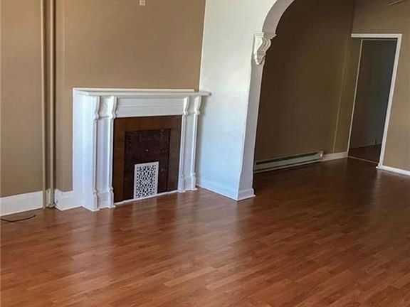 This unit has off street parking to the rear of the property. The entrance for this unit is at the back of the main property. Walking out of the unit you will find a large yard. At the end of the property line is a stream where you can sit and enjoy a small campfire. The basement has a washer and dryer hookup and is a finished basement. Owner pays for water, sewer, and trash. Heat is electric baseboard heating.