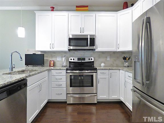First floor master suite with great walk in closet and bath. Bright kitchen with granite, stainless & tile backsplash. Upstairs features 3 additional bedrooms (or 2 + bonus) plus loft area. Jack/jill bath upstairs provides direct access from both bedrooms! Screened porch & deck overlook wooded area for plenty of privacy. Move-in ready townhome in convenient location, minutes from White Oak Shopping Center & growing downtown Garner!
