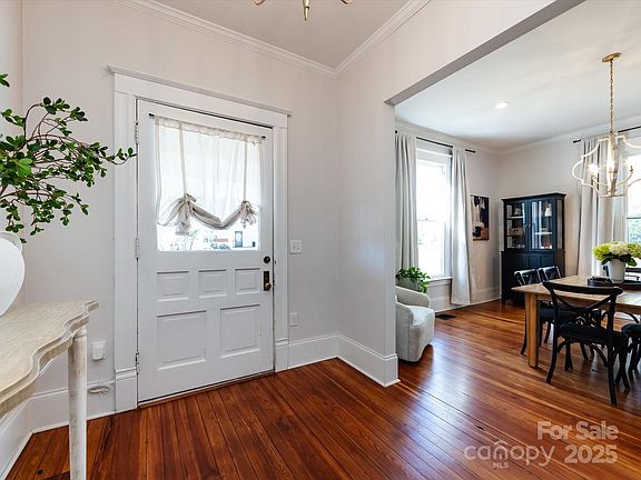 Historic charm meets updates galore in the heart of Rock Hill's Marion Street Historic District. A welcoming front porch draws you inside to find exquisite original hardwoods floors, tall ceilings, and grand rooms that easily flow from one to the next. A front entry dining room includes a painted black fireplace and includes abundant natural light with an adjacent living room offering plenty of space for gathering. Next is a modern kitchen with all white cabinets, quartz countertops and stainless appliances that include a gas range along with a breakfast area. Side entry with drop zone off of kitchen. A main level primary suite includes a spa ensuite that features a soaking tub with brushed brass hardware, a walk-in tiled shower w/frameless glass doors, dual sink vanity and a generous sized walk in closet. Head upstairs to find three additional bedrooms plus a flex loft area. Enjoy the outdoors on a back patio with fenced yard. Minutes to downtown Rock Hill with shops and dining.