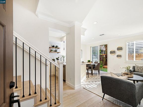 Stunning Ryland Cottages Duet! This townhouse style duet is located on the westside, right downtown. Enjoy being able to walk to all the quaint shops and restaurants downtown Danville is known for! Remodeled to perfection with tons of natural light. Wide plank Ash Oak hardwood floors, plantation shutters and crown molding throughout. Gorgeous kitchen with island seating, custom white cabinets, quartz countertops, subway tile backsplash, farmhouse sink & high end stainless steel appliances complete with wine fridge. Spacious bedrooms and remodeled baths, custom built ins, closet organizers and upstairs laundry. Enjoy outdoor living with the J Montgomery designed backyard space. Raised deck, walking pavers and dedicated dining area are ideal for relaxing or entertaining. Downtown living at its finest! Close to top-rated public and private schools, easy commute options, Iron Horse Trail, Trader Joes, Lunardis and more! Open Sat 3/25 & Sun 3/26 from 1-4pm.