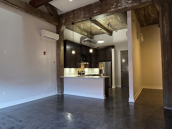 Modern light fixturesKitchen with breakfast barHigh ceilingsLoft style windowsTwo floorsCloset spaceExposed beams and brick