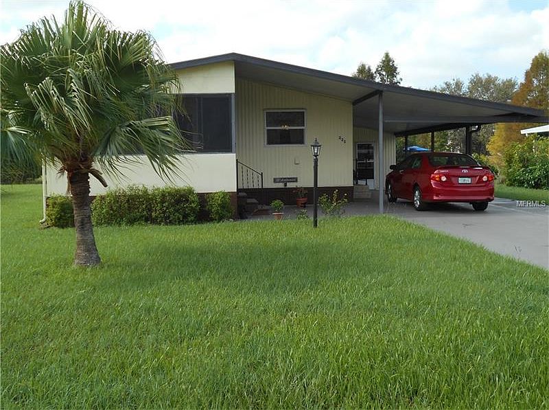 ON THE WATER AND YOU OWN THE LAND FOR UNDER A HUNDRED! Nice two bedroom/two bath home in a desirable 55+ community. Nice floor plan. The kitchen offers a window FACING the front of the home, a stove, refrigerator, and a breakfast bar. The dining area offers a full wall cabinet. The living room opens out to 10x14' enclosed Florida room. Two nice size bedrooms and baths. The roof was replaced in 2013, the A/C has a new compressor, and the thermostat was replaced in September. This is a one owner home and they replaced all the plumbing in 1997. This home has a covered tandum drive extending to a 12x16 utility shed. The storage shed has storage shelves and an exhaust fan! This home has an OUTSTANDING BACK YARD OVERLOOKING LAKE MENLO! Polo Park West offers an Executive 9 hole golf course, two club houses with kitchen facilities, two heated swimming pools, tennis courts, shuffleboard courts, pool tables, exercise room, library, planned activities (such as Bingo, arts, crafts, sports), active neighborhood watch & safety program, and tv station with community announcements. LOW HOA FEES.