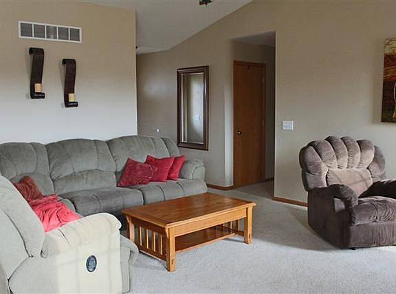 Move in ready home at an affordable price! 4 Bedroom 2 bathroom ranch featuring an open concept floor plan. Spacious living room with cathedral ceilings and dinette with patio doors leading to a great patio and yard. Large master bedroom with walk-in closet and private bath. You'll love the main floor laundry/mud room with additional cabinets/pantry space. 2 Car attached garage with extra storage. Lower level is plumbed for future bath. Nice subdivision near the library and bike trail, minutes to I-94.
