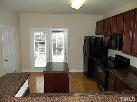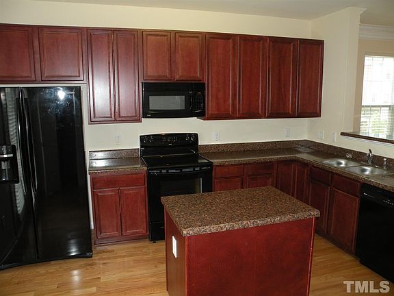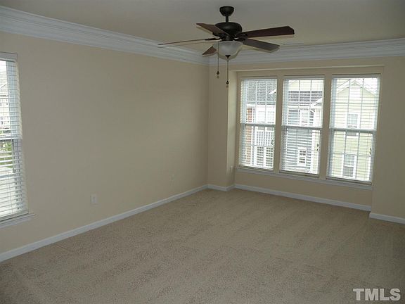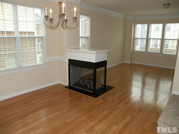 END UNIT townhome in highly sought-after Cary Park! Oversized 1-car garage! Main floor all hardwoods! 3-sided fireplace adds character between dining & family room. Kitchen boasts breakfast bar, 42" cabinets, island & access to deck. Each bedroom has own full bath! Master suite includes 2 closets. Lots of windows/light in this end unit! Convenient to RTP, I-540, shopping & parks. Fridge, washer and dryer provided. Please verify schools.