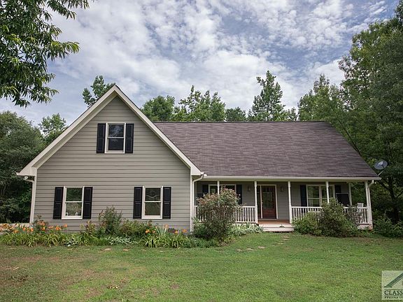 Working 35 acre horse farm with lovely home and barn! This beautiful home has had one owner and has been a great homestead while they have lovingly cared for their horses in an efficient and spacious 4 stall barn. The 4 bedroom, 3 bath home is freshly painted outside and partially inside. It is set back off the road down a drive that splits the open fenced pastures. Features of the home include red oak hardwood floors in main living areas, split bedroom plan, large bonus room over garage, full basement that is partially finished, additional office/work room in basement, covered rocking chair front porch and large deck with access from master suite and great room. Made from white pine from New England, the barn features stalls that have mats, tack room that opens to both sides, cypress barn doors, and water supply. There is also a large riding ring/arena that has lighting for riding anytime. The front pastures are perfectly balanced with the woods on the rear of the property. Neither the house nor the barn and ring are visible from the road, so you have ultimate privacy! There is a small pond as you move towards the back and you will find a creek serving as the back line of the property. Around the house are several beautiful Sawtooth Oak trees. And you will find a couple of apple trees as well as blackberries as you roam through the land. This is a special property that nature lovers and anyone seeking a peaceful setting will completely appreciate! Under 25 minutes to downtown Athens and 15 minutes to Watson Mill Bridge State Park! Can't beat this deal!