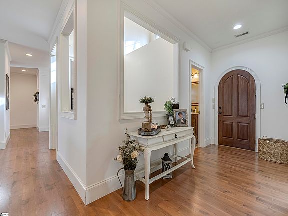 Stunning custom built home built on almost 4 acres of beautifully landscaped land with a pond to enjoy a picnic or fishing. Located in DW Daniel school district and about 10 minutes from Clemson. A scenic private driveway leads to this home on top of a small knoll. Enter through the arched door on the rocking chair front porch into this bright home with all the attention to detail. Wood flooring, crown molding, plantation shutters and more! Just through the entry, the large living room with window seats to enjoy the private back yard and a gas fireplace perfect for entertaining. The kitchen is finished with beautiful cabinetry, granite countertops, center island with woodblock top and gas cooktop, kitchen nook with seating and a beautiful sunroom with a vaulted wood ceiling just off the kitchen as well as a back deck for those nights you want to grill out. Additionally this home has both his and her office space just off the kitchen for those "work from home owners". (Current owners plan was to convert her office to a walk in pantry.) The large dining area can accommodate a table for 8-12. The master bedroom is located on the main level with a large custom bath, dual vanities, walk-in closet and french doors leading to the deck where you can have your morning coffee while you overlook your beautiful pond. Also on the main living level, large laundry as well as a second bedroom and full bath. The lower level is finished with another large living space with a gas fireplace, another master bedroom with full bath, a 4th bedroom and additional full bathroom. A very large work space with large double doors and plenty of additional storage! Just out the back are trails you can walk through your property and enjoy the scenery and pond, or cruise around on dirt bikes! This home was built was built BY the builder FOR the builder and has many details. Central vac system, tankless hot water heater NEW Roof and more. Sale includes two parcels. Current owner has plans for a garage already approved by the HOA. This home is a must see for those wanting a home close to town but the feeling of living in the woods.