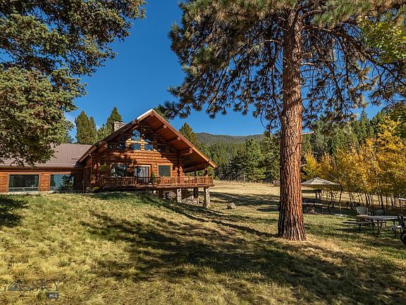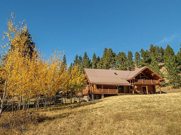 The Montana dream property you've been waiting for! This 5800+ sq ft hand-hewn log home is nestled in the Elkhorn Mountains, boarding thousands of Beaverhead - Deer Lodge National Forrest acres, & located in the coveted FWP Hunt Unit 380 known for it's trophy bull elk. Abundant wildlife including elk, moose, Mule Deer, Whitetail Deer, & more frequent the area. Remote yet accessible, only 6.3 miles NE of Boulder with cell & internet coverage. 20 acres with year-round Muskrat creek with abundant fish, West Slope Cutthroat (native to MT) & Brook Trout. There's a year-round natural spring that runs into the creek & produces 10 to 12 gpm. Home features rustic glamour & unique Montana finishes throughout.